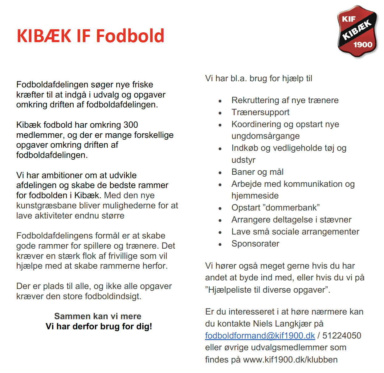 Grib chancen og bliv en del af fodbolden i Kibæk.....